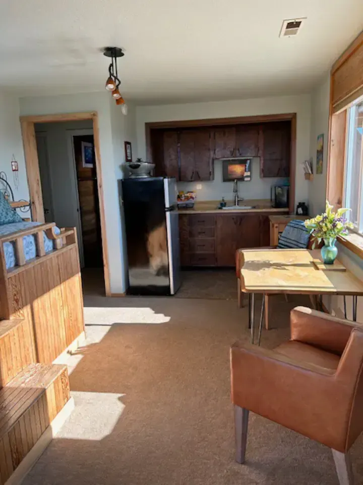 Kitchenette: Fully equipped with a refrigerator, microwave, coffee maker, toaster, and an electric wok, perfect for preparing simple meals. Please note, there is no stovetop.